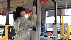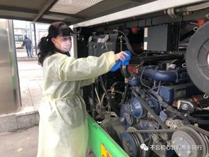 2月24日2路第一天恢復(fù)運(yùn)營,每部參運(yùn)車輛多出一名隨車體溫檢測員,王穎跟丈夫分在同車組。早晨6:00,夫妻倆已經(jīng)到2路始發(fā)站唐山站,開始出車前的準(zhǔn)備工作:檢查完車輛安全,再打掃干凈衛(wèi)生,噴灑消毒液對車廂每處角落進(jìn)行徹底消殺。王穎跟丈夫一對一天輪流開車、進(jìn)行登記,從唐山站行駛到啟新立交橋后,就要停留兩分鐘嚴(yán)格落實(shí)一車次一消毒。遇見急躁的乘客,王穎就耐心勸導(dǎo);有不明白的老年乘客想乘車,她也總不厭其煩地解釋溝通。