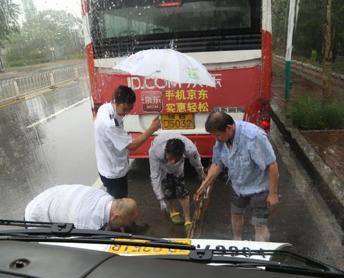 12時(shí)30分,207路車(chē)在行至開(kāi)平路段時(shí)出現(xiàn)故障。機(jī)務(wù)隊(duì)長(zhǎng)張繼民立即開(kāi)著拖車(chē)前往現(xiàn)場(chǎng),不料返回途中拖車(chē)也壞了,得知情況的隊(duì)長(zhǎng)立即與修理車(chē)間聯(lián)系,又派出安全員孫濤、張利明和修理工王金偉火速趕赴現(xiàn)場(chǎng)冒雨搶修,直至晚上六點(diǎn)多,故障車(chē)和拖車(chē)才順利返回車(chē)場(chǎng),而參與搶修的幾名工作人員早已經(jīng)全身濕透。