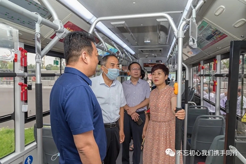 隨后,市政協(xié)視察組一行登上了新投入使用的30路純電動公交車進(jìn)行體驗(yàn),對新公交車的各項(xiàng)新功能進(jìn)行了解,并就新投入使用的純電動公交車的安全性能、乘坐舒適度、電池續(xù)航里程以及疫情防控常態(tài)化下公交運(yùn)營、公交司乘人員的文明服務(wù)、老年人乘坐公交車等情況同公交管理人員進(jìn)行了深度交流。